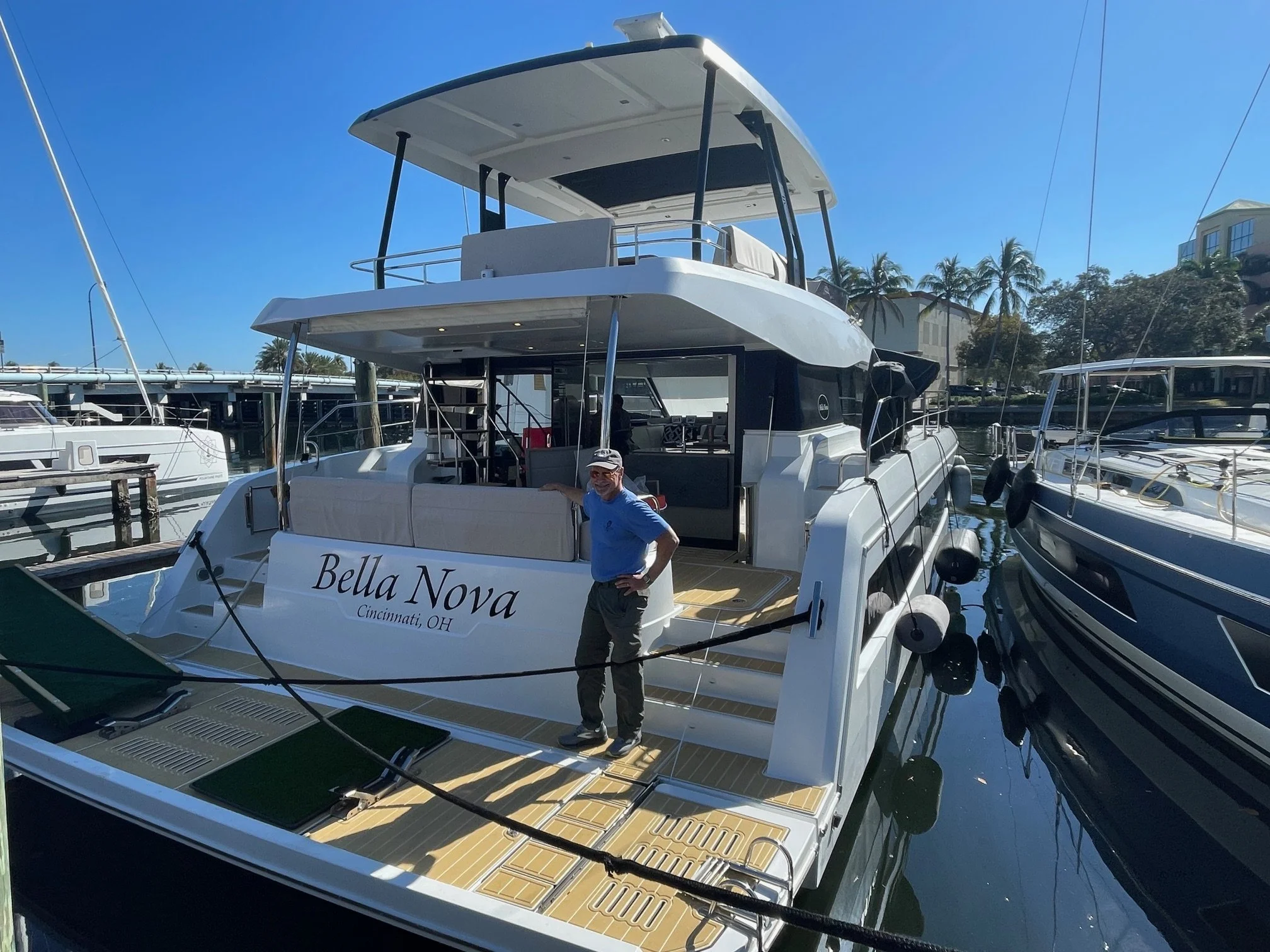 Bella Nova is a Fountaine Pajot MY6 power catamaran. She is 50 feet long with the swim platform and has a 21.5 foot beam. Her draft is 4.6 feet and there are 3 bedrooms and 3 baths on board.