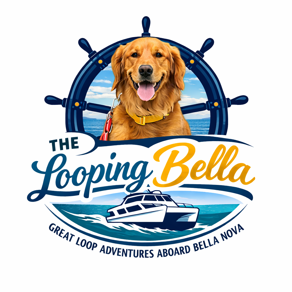 We’re cruising America’s Great Loop aboard our power catamaran Bella Nova, accompanied by our golden retriever first mate, Bella.